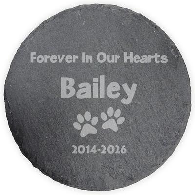 PGS Paw Prints Forever In Our Hearts Slate Round Garden Stone, White, 10-in