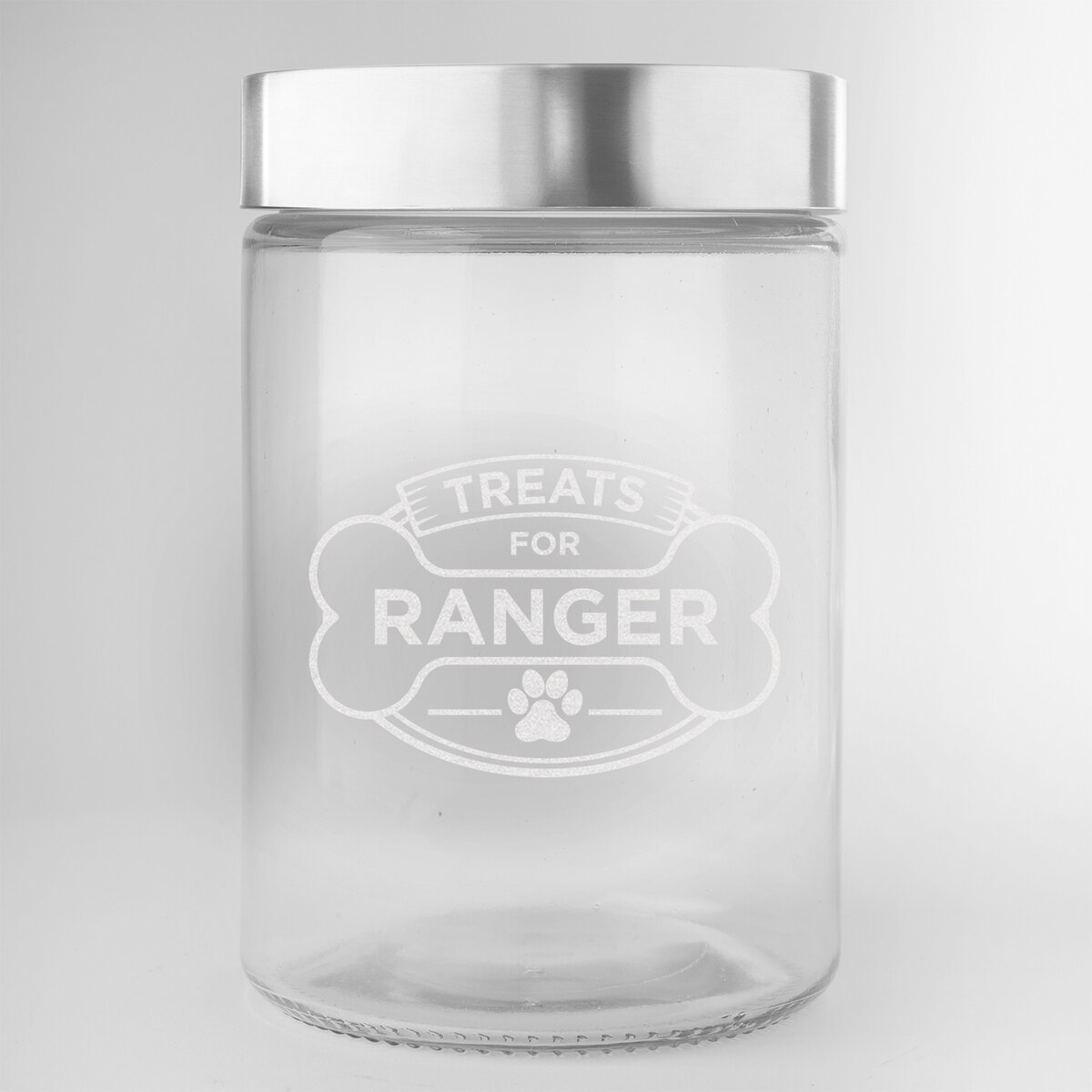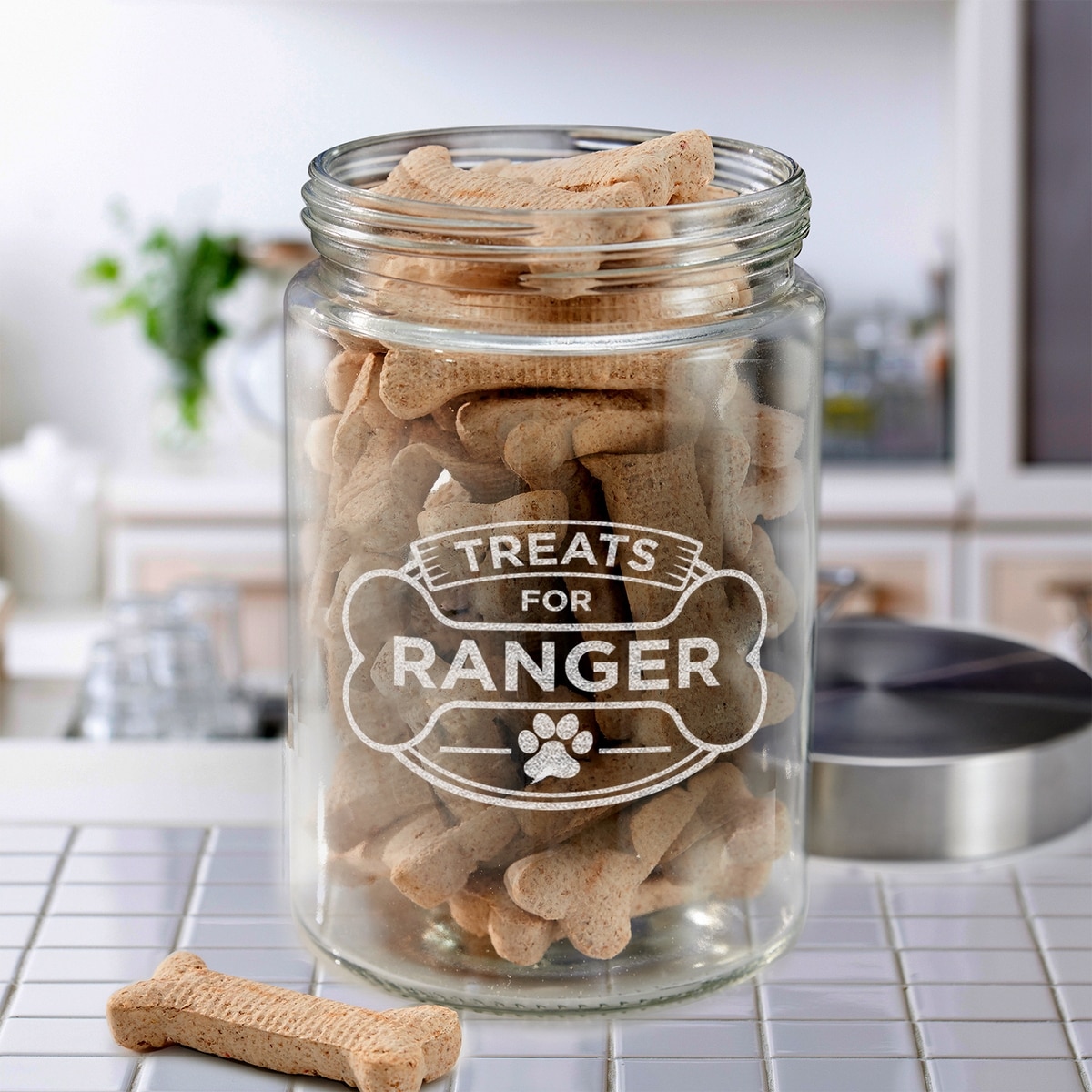 PGS Treats for with Banner & Bone Glass Jar with Silver Lid, Clear, Laser, 40-oz