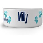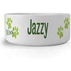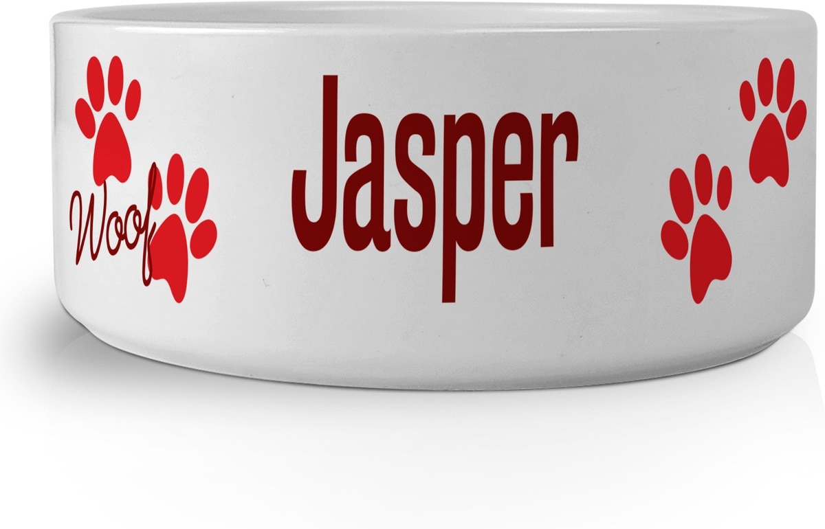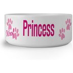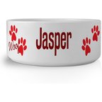 PGS Woof with Paw Print Pattern Small Pet Bowl, 7 x 2 7/8-in, Currant/White