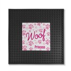 PGS Woof with Paw Print Pattern Square Printed Small Pet Mat, 12 x 12-in, Fuschia/Black/White