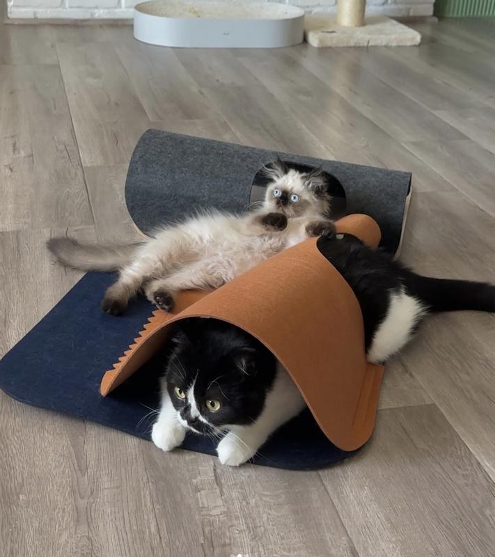 My cats both love it, they love the felt texture and immediately were diving through the tunnels. However, the tunnels immediately collapsed and don't pop back up once they're flattened. They still lay on them but they can't play in the tunnels after pouncing on them once. I'm thinking about sewing wires into tunnel fabric to keep the arch to keep it from collapsing, but wish they would have come that way to begin with.