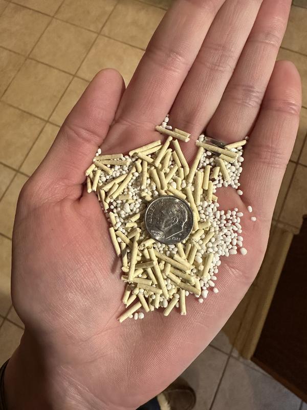 I was excited to try this litter, but was disappointed in its performance. I liked the packaging and litter appearance. It comes vacuumed sealed, making it easy to store and move around. The litter itself was very neat! It’s composed of very very small spheres and cylinders. I included a photo with a dime for scale. According to the packaging, it was supposed to have a scent, but I couldn’t smell anything. I found the odor control to be extremely poor. The litter had an odor after its first use that unfortunately never dissipated. The litter did clump nicely around the urine. The clumps are very hard as well. I just wish the odor control was better.