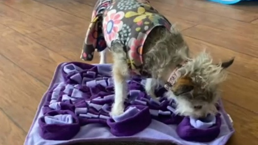 My little Jack Russell mix devours his food. I tried a few different things to slow him down, but nothing worked-until I tried Piggy Poo's snuffle mat. Total game