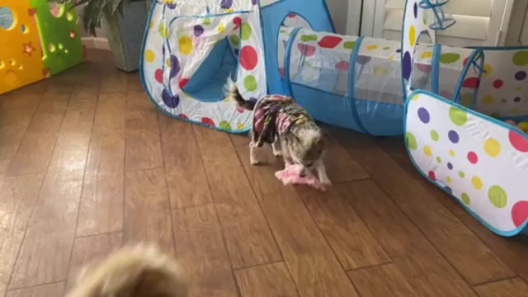 This has been my shih tzu pup's favorite toy since he was 4 months old. I get a new one every couple months. Not because he wears it out (they're in great condition) but because it gets dirty (he likes to take it outside or wherever). He loves the krinkle sound but doesn't care that much about the squeaker.