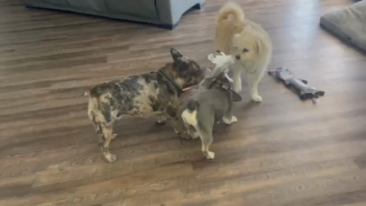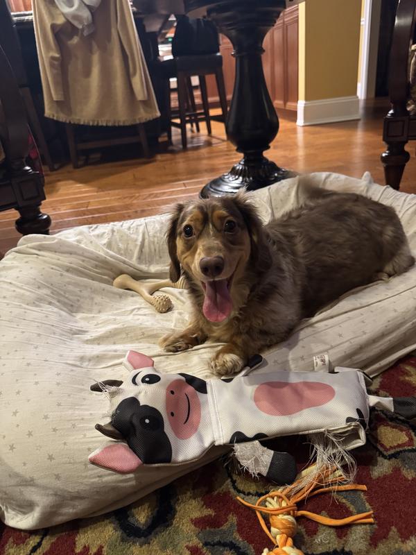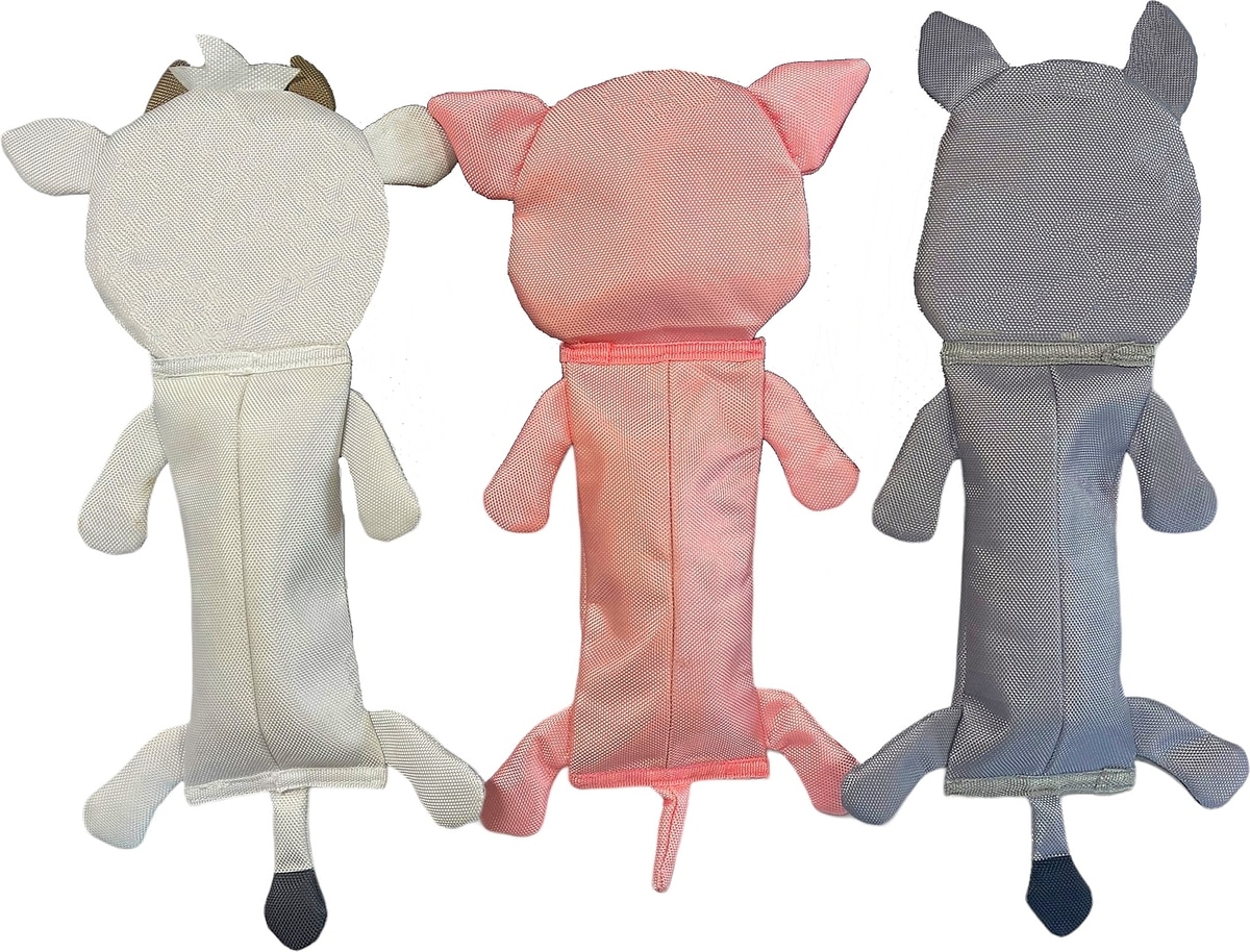 I gave the pig to my 13-year-old Jack Russell mix, the donkey to my 9-month-old Border Collie mix, and the cow to my brother's Belgian Malanois mix. All enjoy the