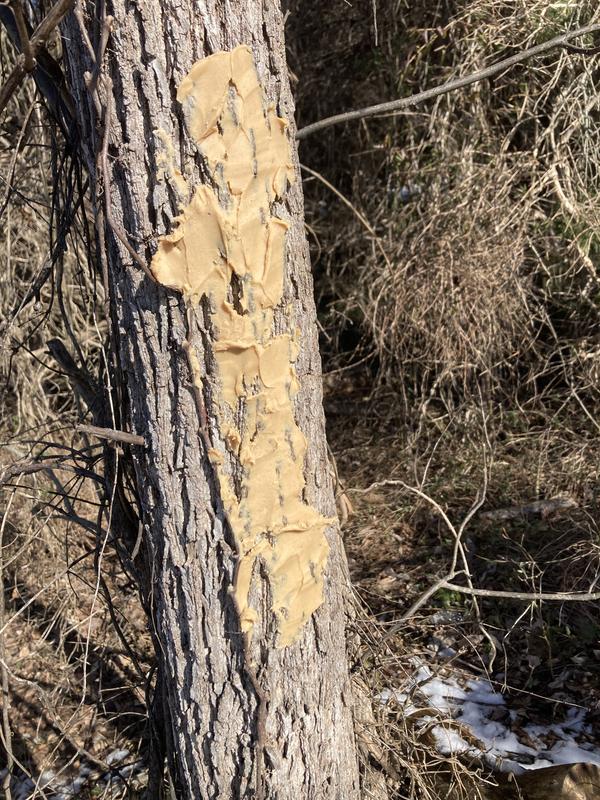 I wasn't sure at first putting on this peanut butter type texture product on my trees. But I went ahead and did it especially for winter time to help the birdies