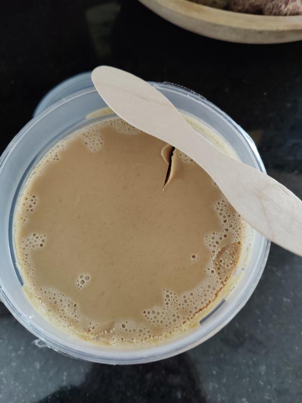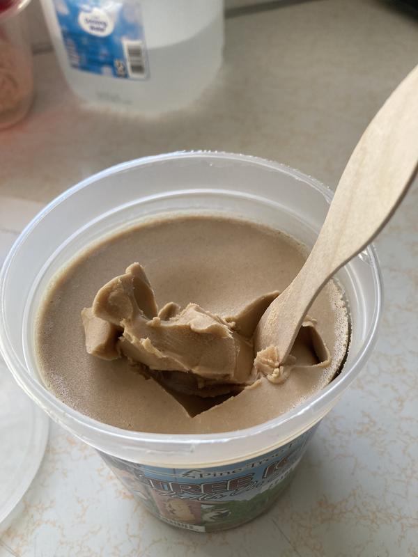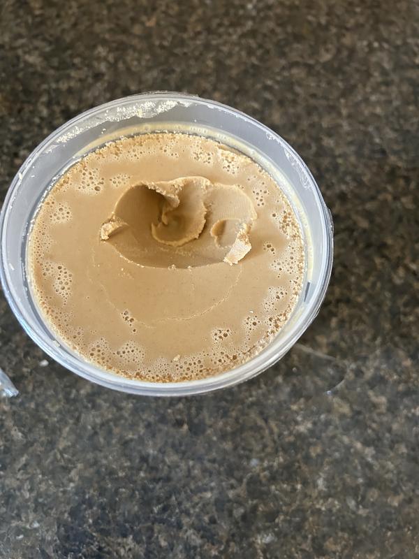 This is an interesting product. It was delivered frozen solid but once it thawed out it is easily spreadable. It smells and looks like peanut butter(one of the main