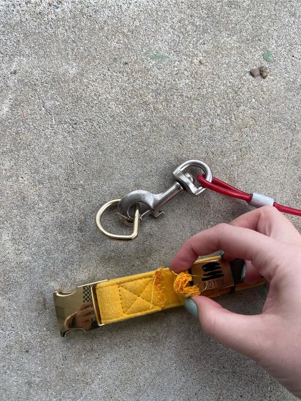 We've been using this collar for about a week. Today my dog started chasing after something while on her tie-out in the backyard and the D-ring completely snapped