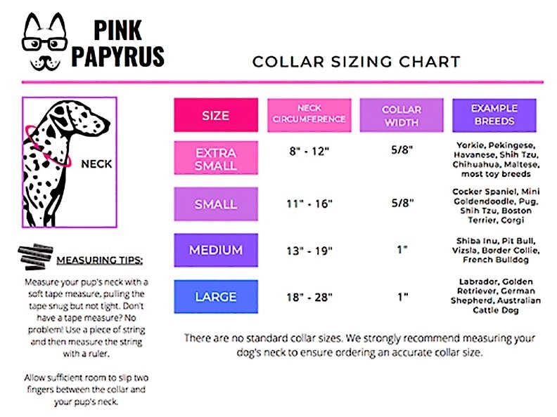 The Pink Papyrus Drew Polyester Dog Collar is fantastic! The polyester material is both durable and soft, ensuring my dog’s comfort while still being strong enough to withstand everyday wear and tear. The design is sleek and modern, and it fits perfectly without being too tight or too loose. The collar's buckle is secure and easy to fasten, giving me peace of mind during walks. Plus, the vibrant colors and clean design make it look great on my dog. I highly recommend this collar to anyone looking for a stylish and sturdy option!