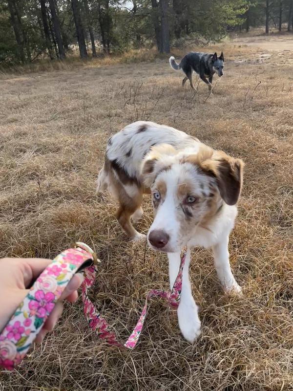 This is our first soft leash from Pink Papyrus, to match our “Gianna” collar! The set looks darling on our puppy and the leash is splendid. The hand grip is padded, the clasp is beautiful, and it is a sturdy build. So happy to have picked this color for our girl!