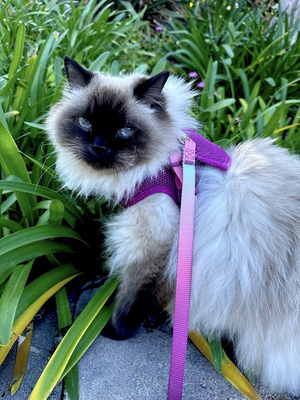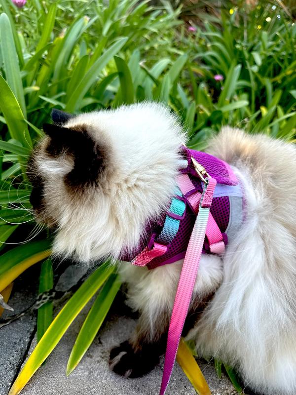 I am beyond impressed with this Pink Papyrus cat harness! The purple color is even more stunning in person, rich, vibrant, and seriously beautiful. It fits my cat