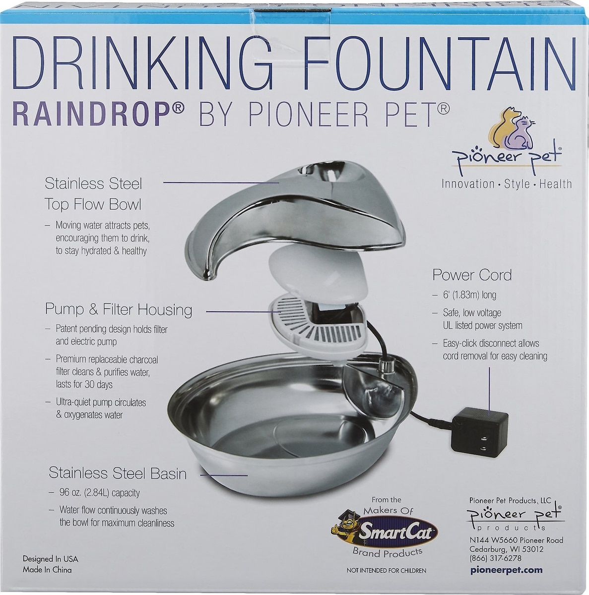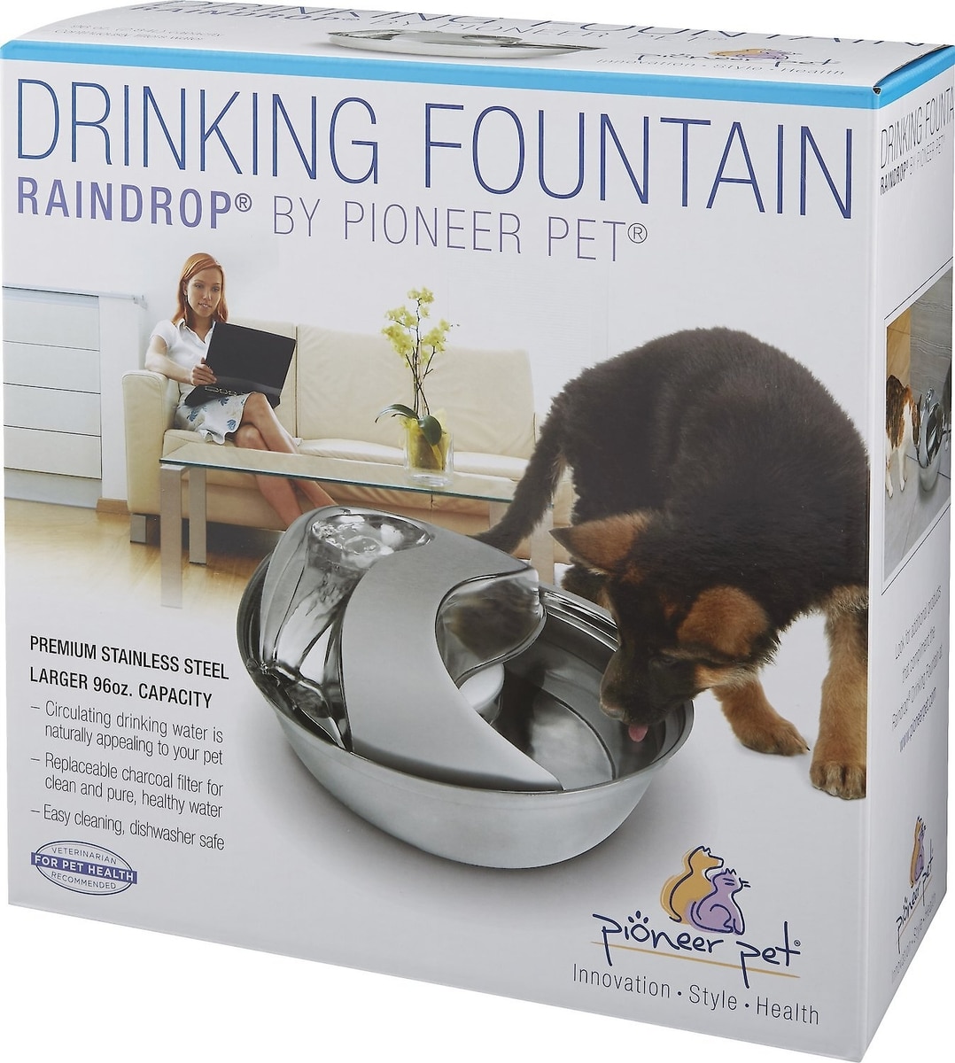 Pioneer Pet Stainless Steel Dog & Cat Fountain Raindrop Design, 96-oz