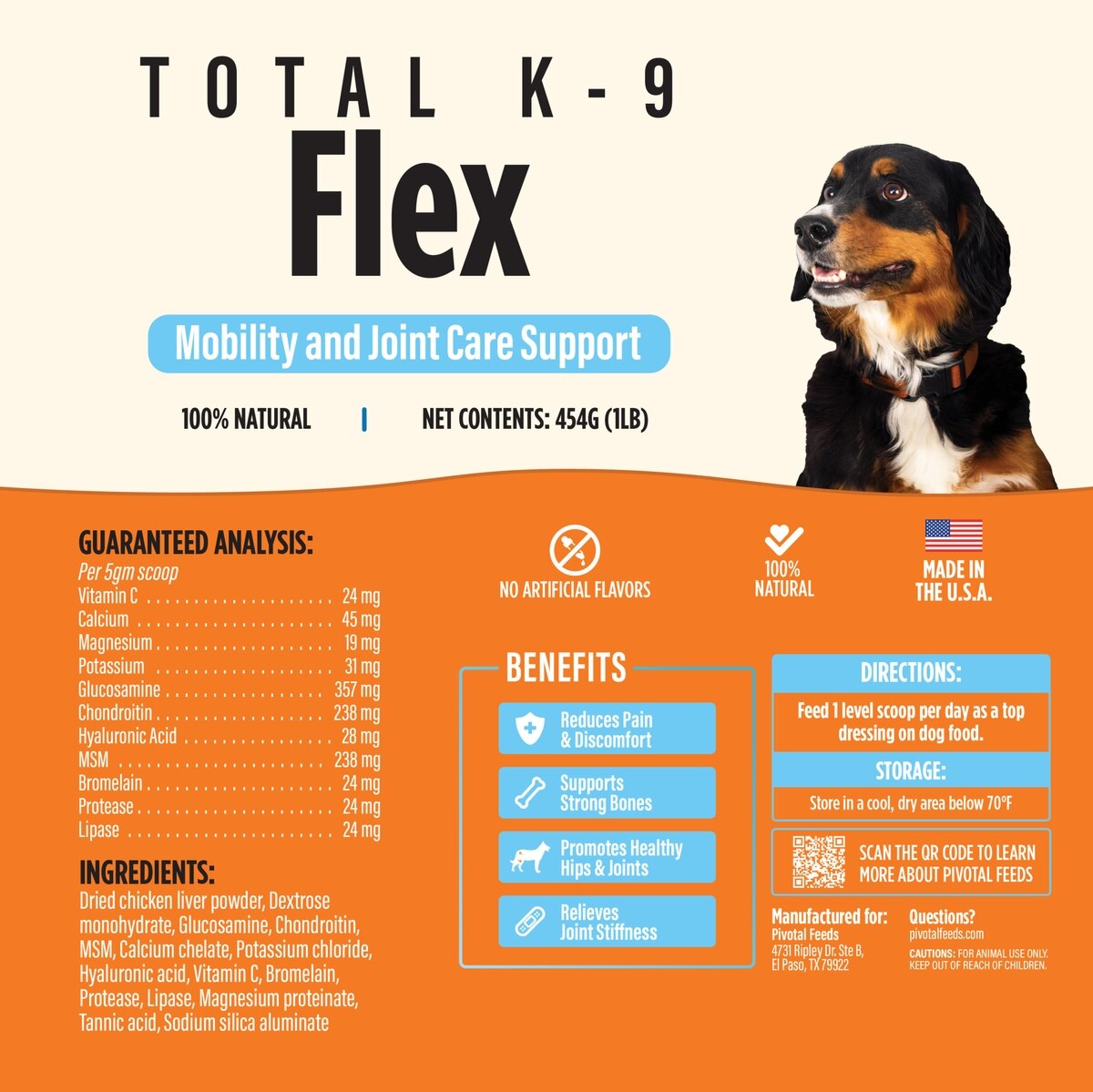 Pivotal Total K-9 Flex Hip & Joint Support Dry Dog Food Topper, 1-lb tub