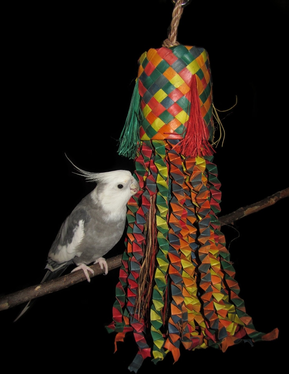 This toy is suitable for Lovebirds, Parrots, Parakeets, Finches, Cockatoos, Cockatiels, Canaries, Budgies, and Amazons.