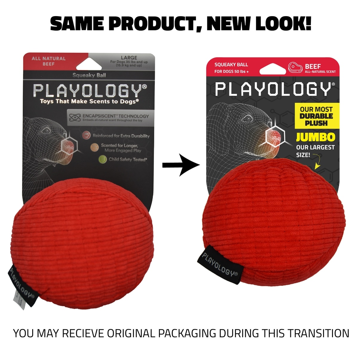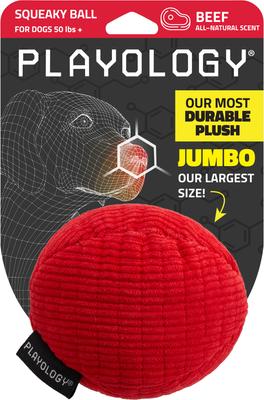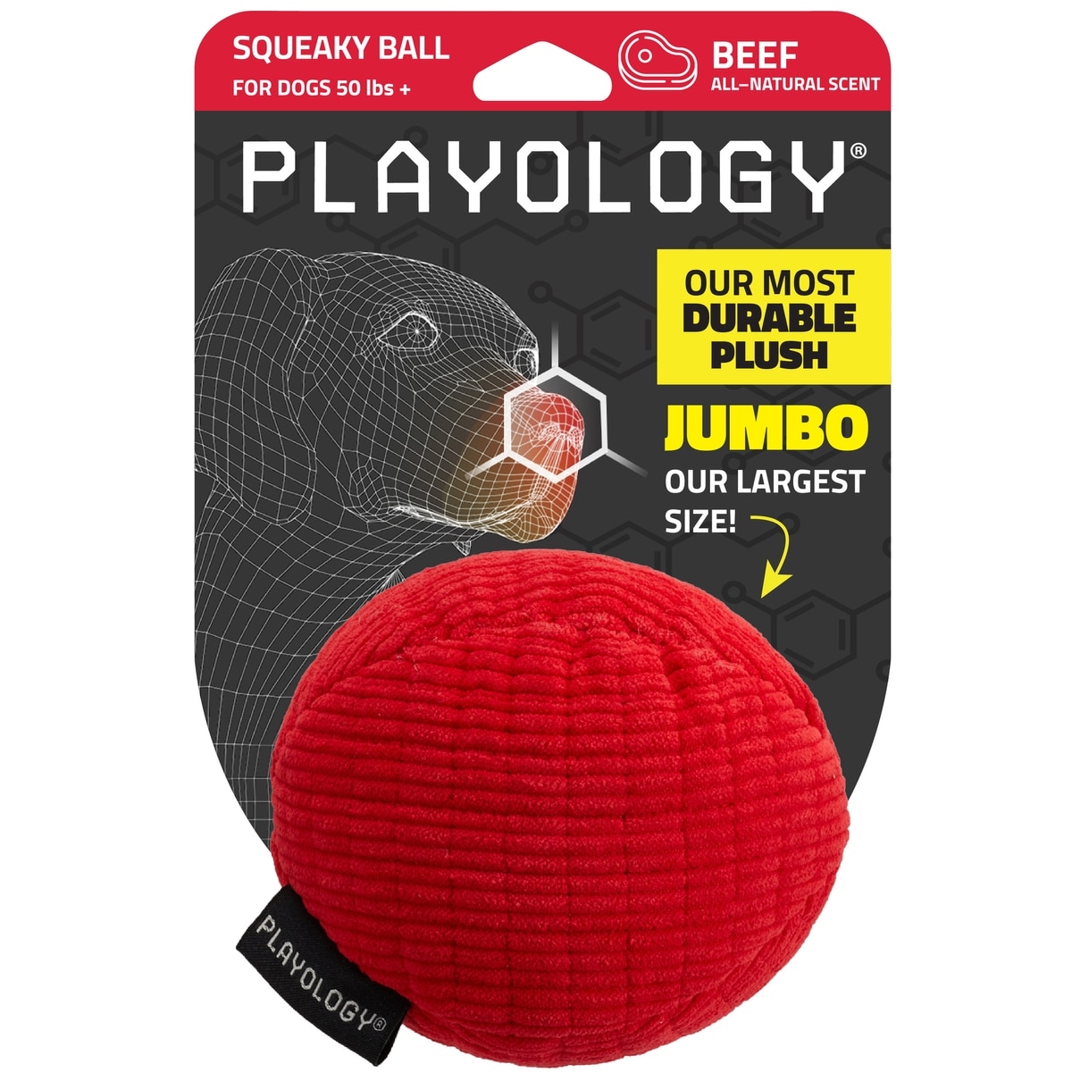 Playology Beef Scented Squeaky Ball Plush Dog Toy, Jumbo