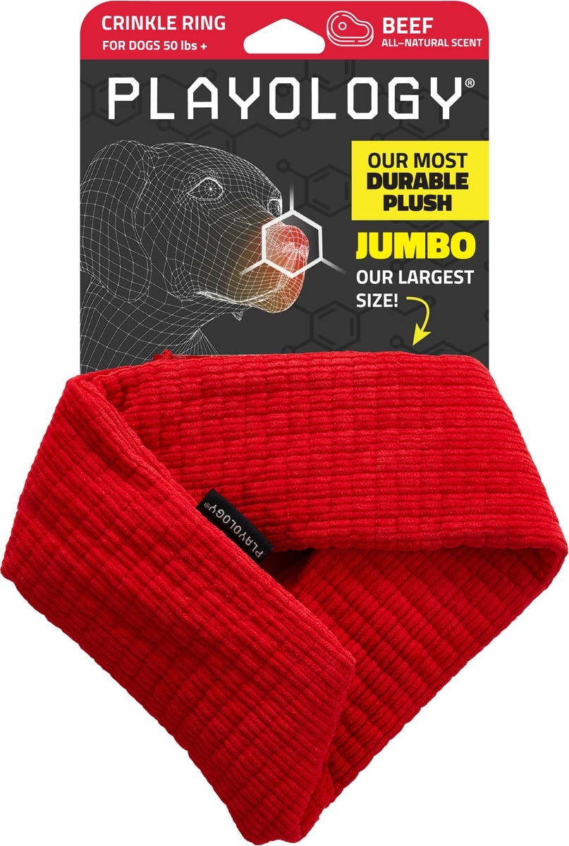 Playology Beef Scented Crinkle Ring Plush Dog Toy, Jumbo