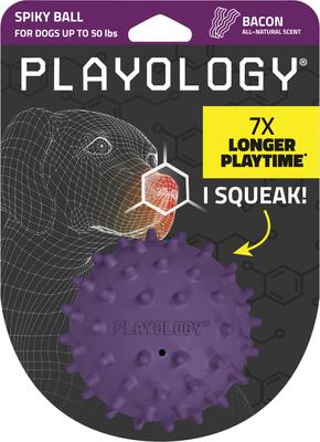 Playology Bacon Scented Spiky Tough Squeaky Ball Dog Toy, Purple, Medium