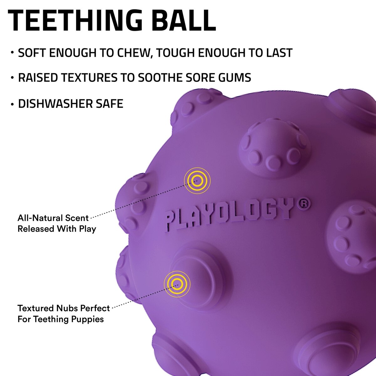 Playology Bacon Scented Young & Active Tough Teething Ball Dog Toy, Purple, Medium