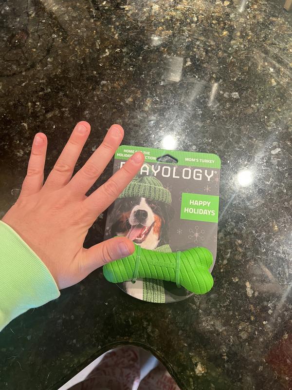 Playology Christmas Holiday Turkey Scented Dual Layer Bone Dog Toy, Green, Jumbo