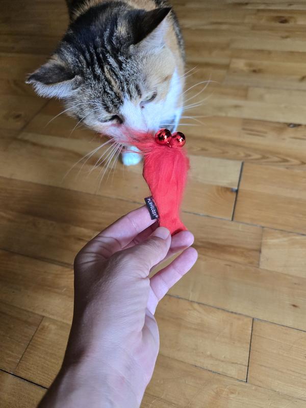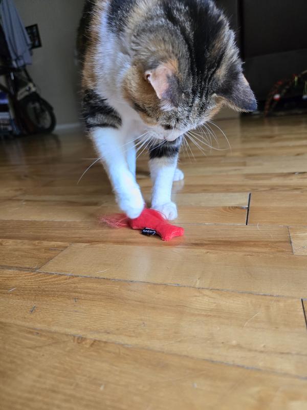 The Playology Felt Fish Cat Toy is a huge hit with my cat! He goes wild for the built-in catnip, and the felt material holds up really well to his playful attacks