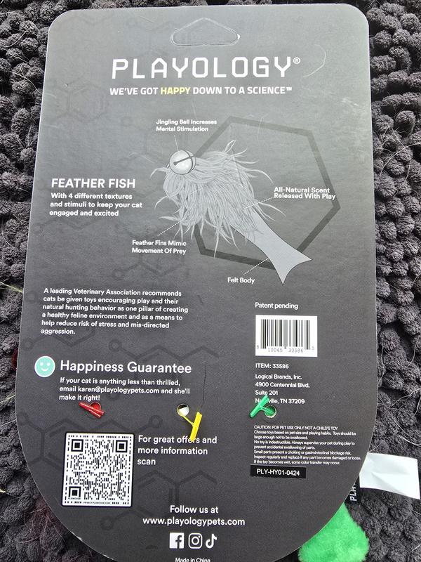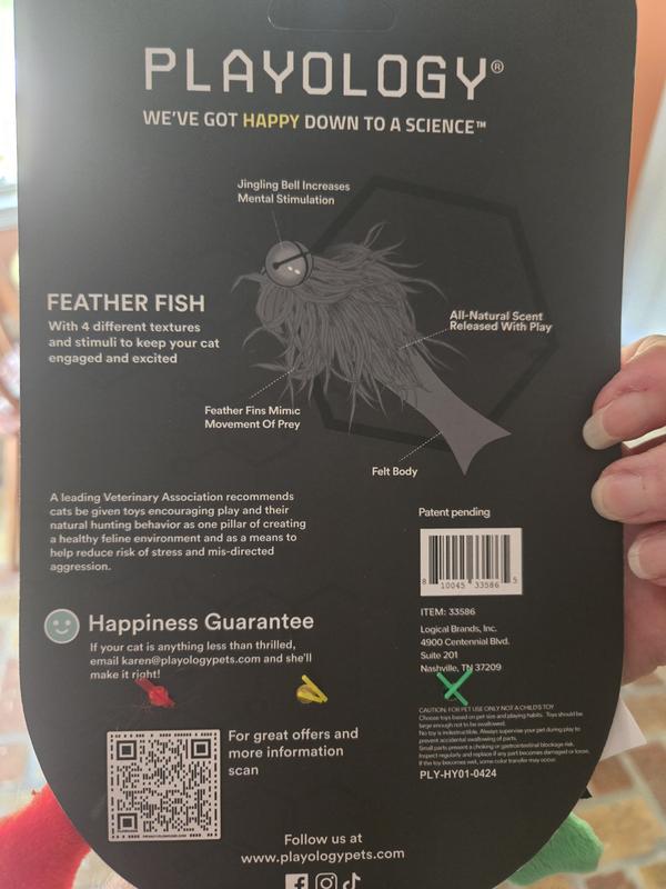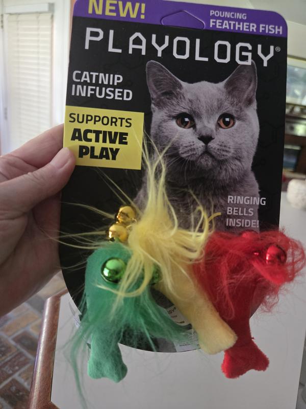 Playology Feather Fish is designed by animal lovers who know what kitties like. And the toy has the same safety standards as toys for human children It's vibrant