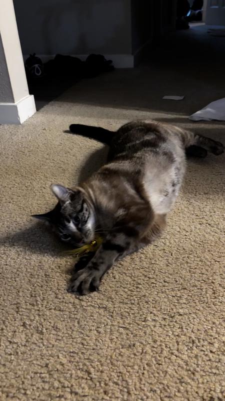 - Features vibrant colors and feathery features to entice your kitty’s natural instincts.