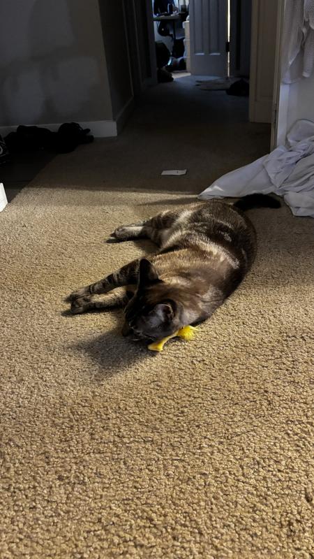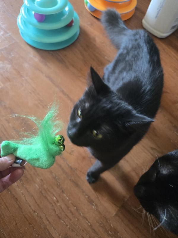 On paper, looked like a purrfect match to my cats’ preferences for playtime. In reality, a total dud. Biggest issue: bells. This is not a good “toss and catch” toy; the bells weigh more than the rest of the toy, making it top heavy and awkward to even toss in the air to start the game. (May remove bells to see if this improves interest.) And toys do not emanate any catnip scent for me. May be there for cats, but I can usually tell if a toy contains fresh or strongly scented catnip. Sorry, guys! Wanted my cats to like these colorful toys. But right now, they simply ignore, or run away if I toss them. Meantime, their very scruffy, very chewed older catnip toys continue to be their favorites!