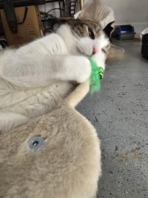 From the moment I took this out of the box, Nermal was interested. She's an older kitty, so she doesn't play a lot anymore due to arthritis, but she loved these