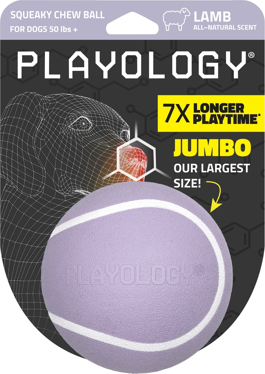 Playology Lamb Scented Squeaky Chew Ball Dog Toy, Jumbo