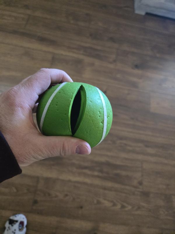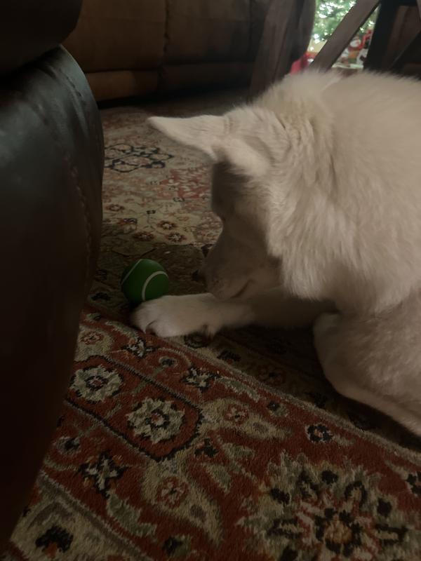 I rarely write reviews but I just gave my dog this ball for Christmas and she’s OBSESSED. She is never interested in toys but she has not let this ball go since I gave it to her.