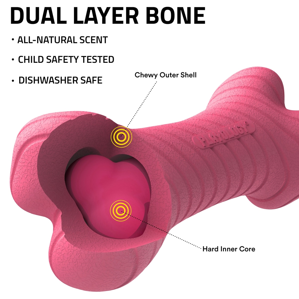 The dual-layer design offers a chewy outer layer and a hard inner core for extra texture and fun.
