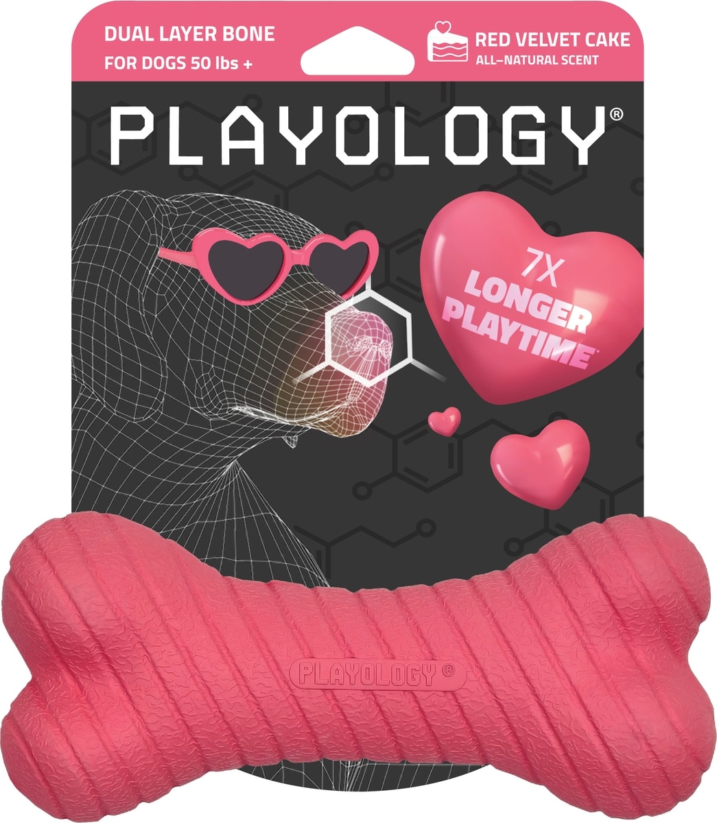 Playology Red Velvet Cake Scented Dual Layer Bone Dog Toy, Jumbo, 1 count