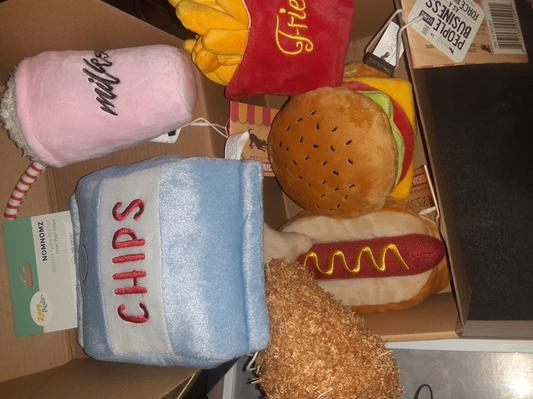 The burger, hotdog and fries all include removable parts that can be used to hide treats.