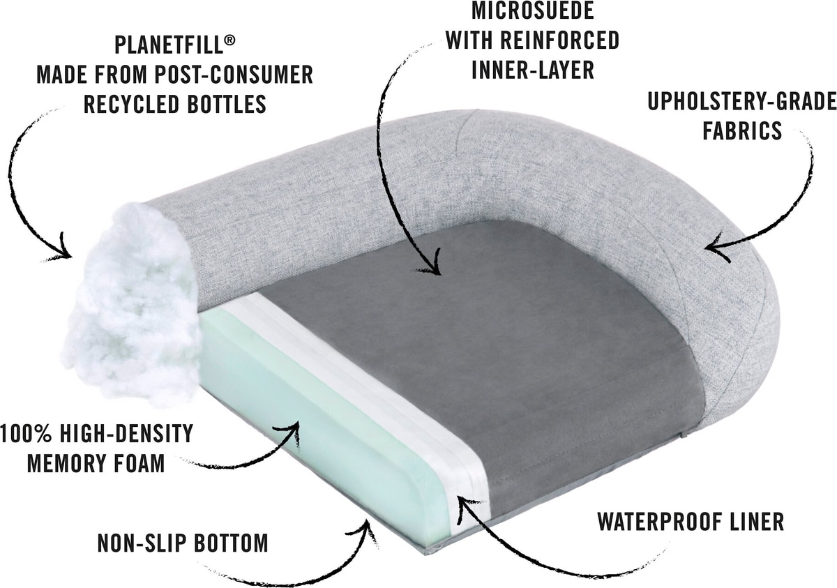 • High-density memory foam cushion is surrounded by stuffed bolsters for next-level canine comfort.