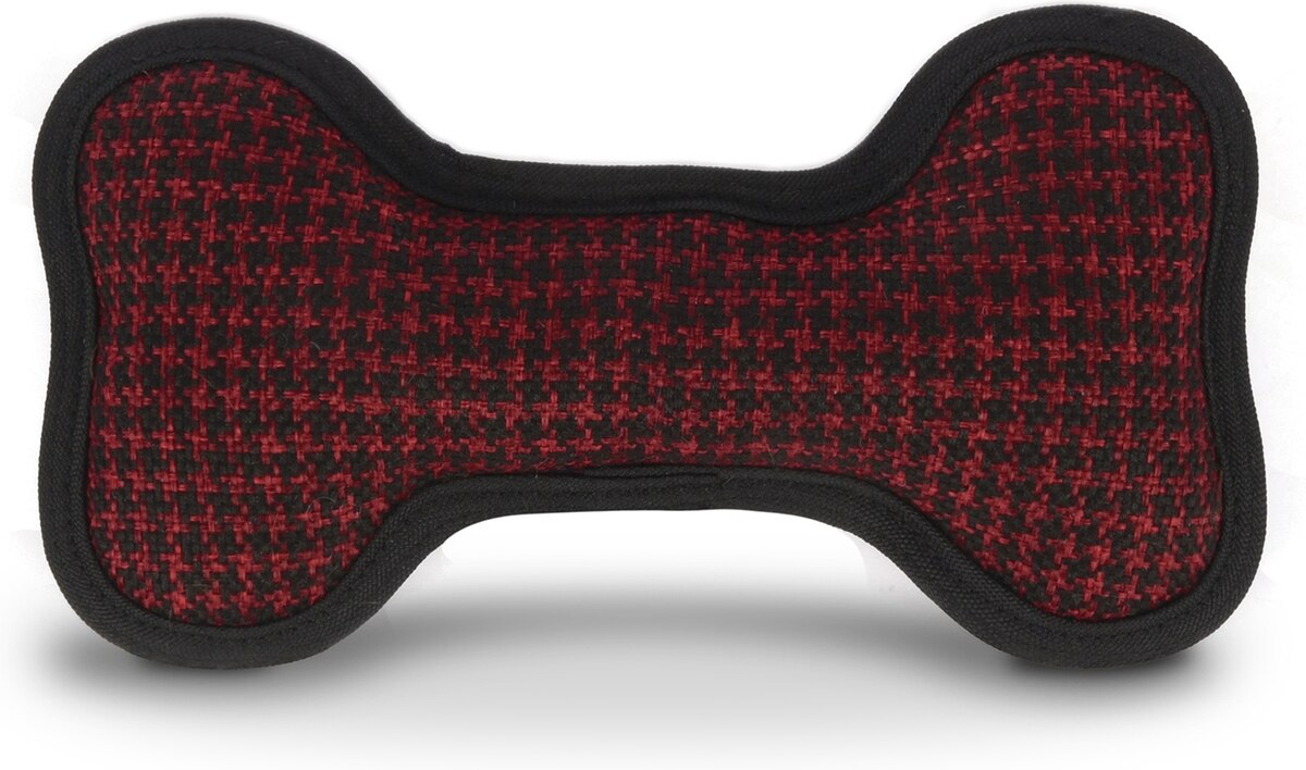P.L.A.Y. Pet Lifestyle and You ECO PLAY Bone Houndstooth Squeaky Plush Dog Toy