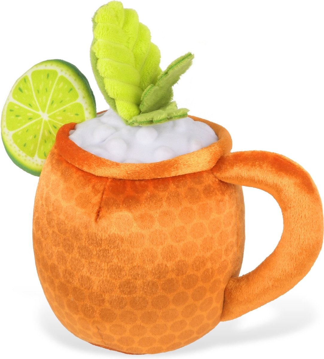A double-layer exterior and reinforced stitching give this drink-themed toy extra strength.