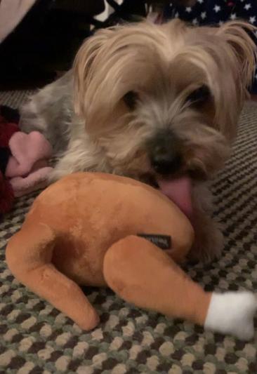 This is a super cute toy, I am saving it to give to our dog on Thanksgiving day. We are hosting and have 20 guests, 1 special needs adult who is not a fan of dogs and a set of 3 yr old twins, so a new toy will help keep our dog occupied.