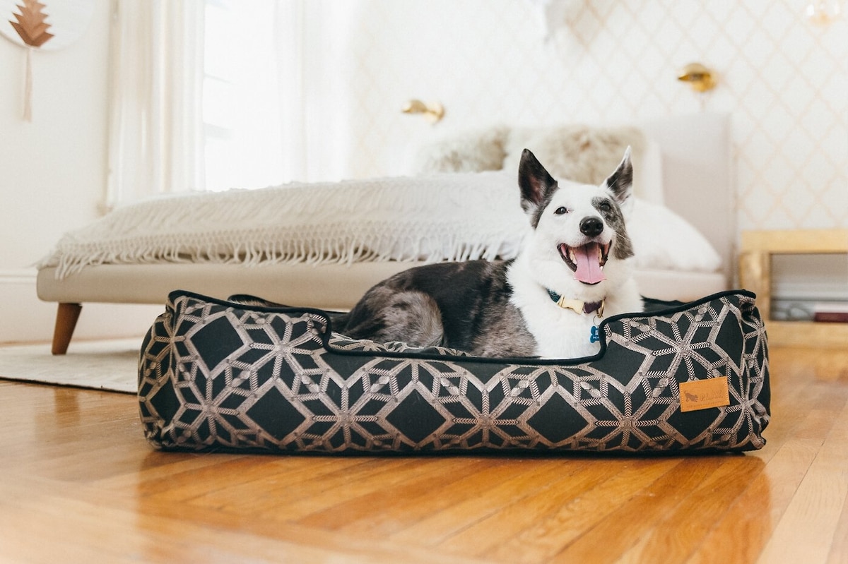 P.L.A.Y. Pet Lifestyle and You Solstice Bolster Dog Bed with Removable Cover, Stormy Night, Small
