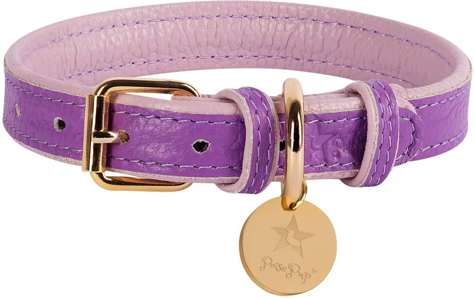 PoisePup Lavish Lavender Leather Standard Dog Collar, Purple/Lilac, Small: 9.5 to 12.5-in neck, 3/4-in wide