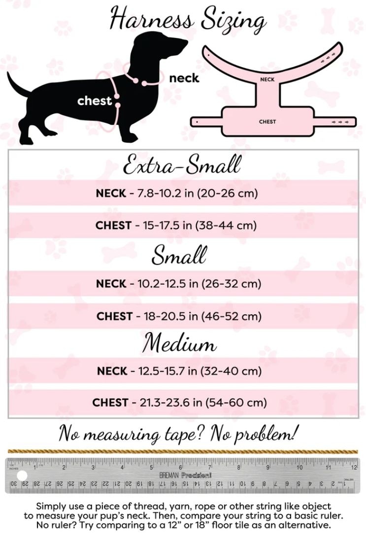 • To ensure your furry friend gets a comfortable and secure fit, make sure to measure her and order the coordinating size.