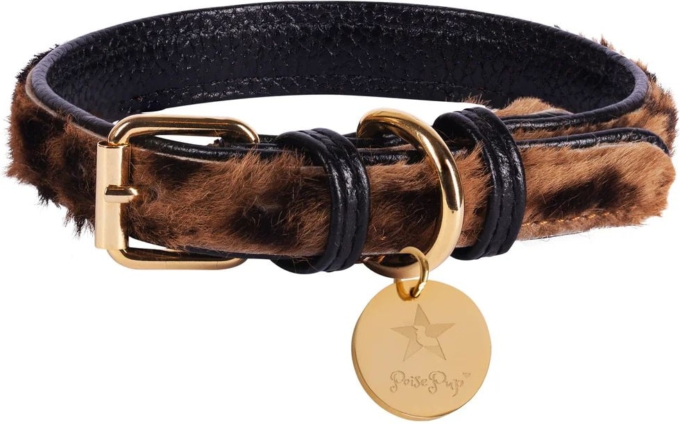 PoisePup Wildest One Leather Standard Dog Collar, Black/Leopard, Small: 9.5 to 12.5-in neck, 3/4-in wide