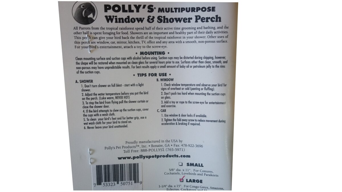 Polly's Pet Products Deluxe Window & Shower Bird Perch, Large
