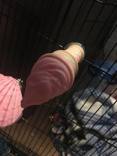 It is GINORMOUS and my Macaw is terrified of it. If your bird is a voracious mineral-block-chewer, or a fearless toy attacker, this will be ideal for your setup and this will be the first block that will last a very long time. However, if your bird is somewhat afraid of objects that are almost as large as their body occupying the corner of their cage, then you will understand. My Macaw eyeballs this gigantic ice cream cone with suspicion.