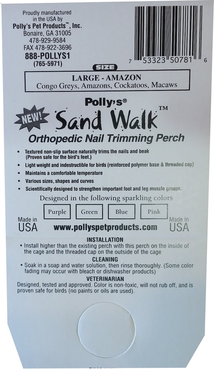 Polly's Pet Products Sand Walk Orthopedic Bird Perch, Color & Shape Varies, Large
