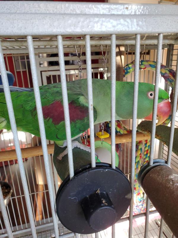 The Large size is suitable for cockatoos and macaws.
