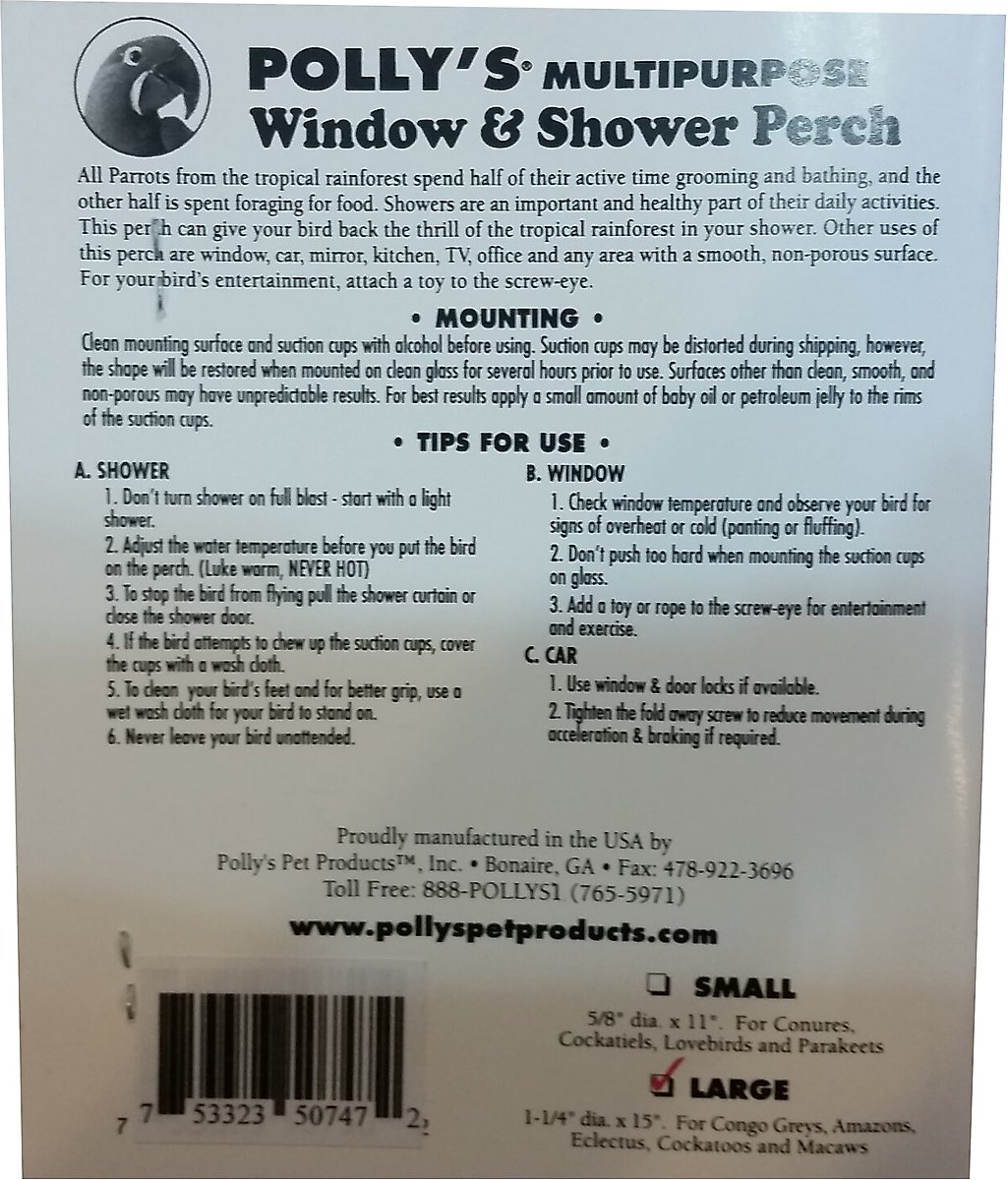 Polly's Pet Products Window & Shower Bird Perch, Large