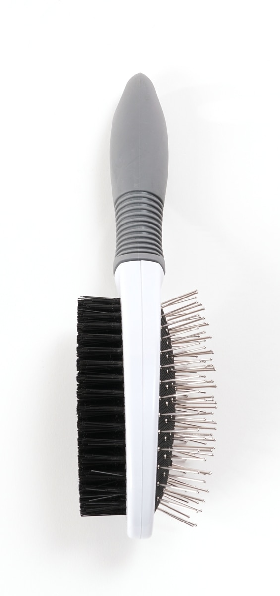 Precious Tails Double Sided Soft Bristles Dog & Cat Slicker Brush, Gray White