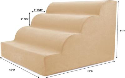 Precious Tails High Density Foam Scalloped 4 Steps Dog & Cat Stairs, Brown