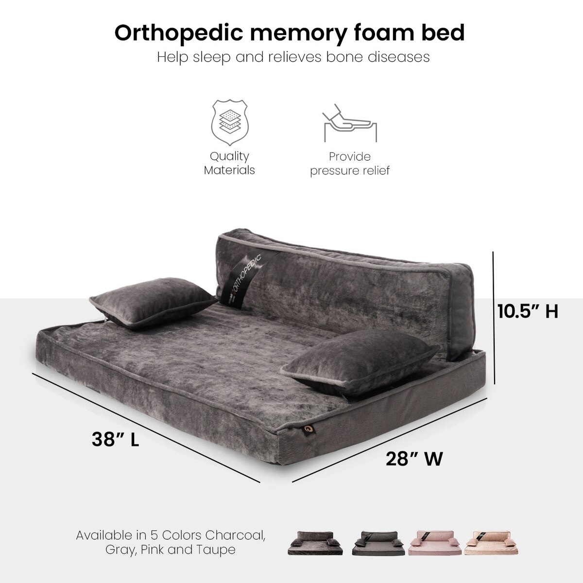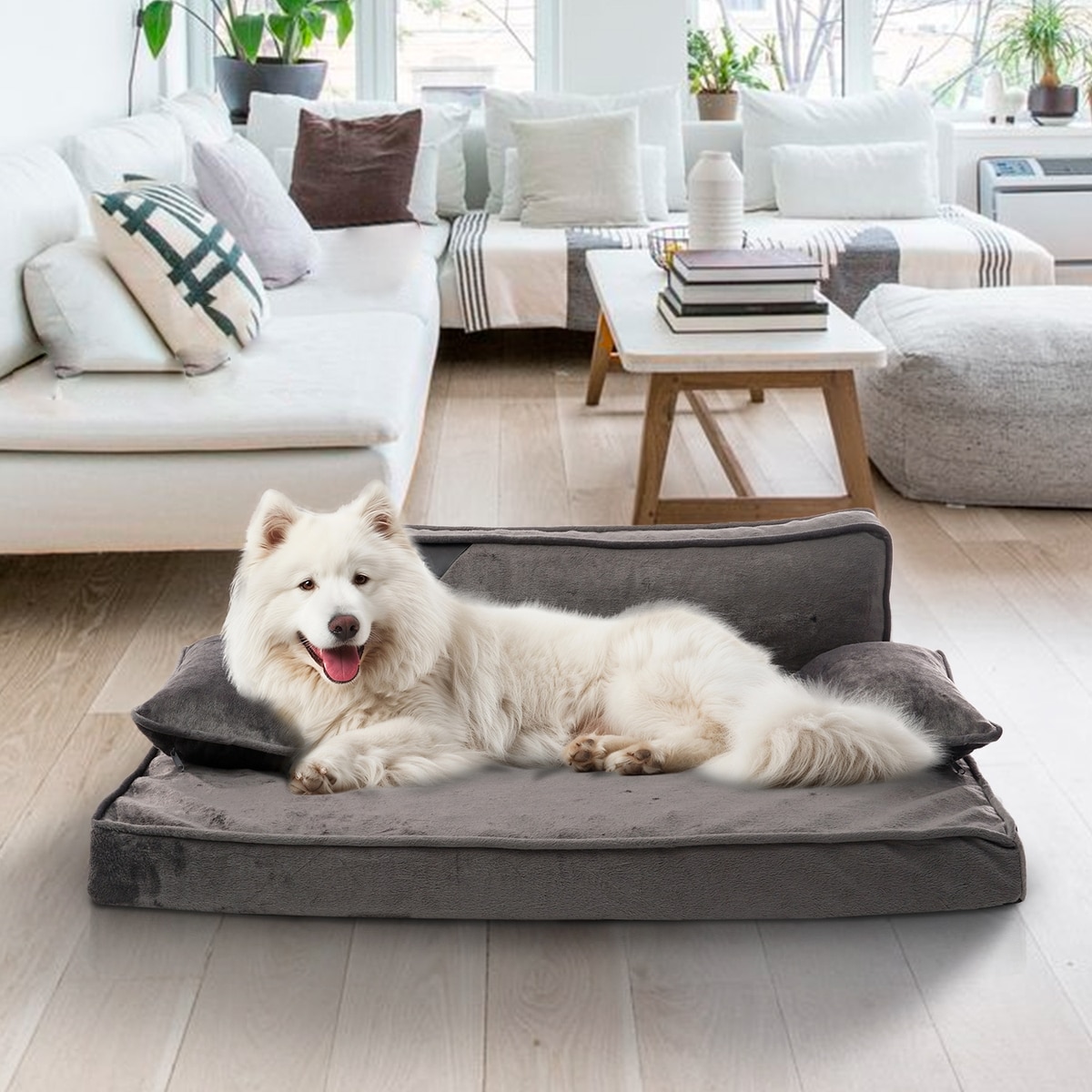 Precious Tails Precious Tails Modern Sofa Cat & Dog Bed with Removable Cover, Gray, Large