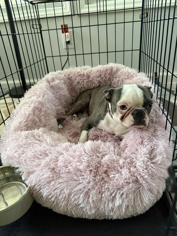 Precious Tails Super Lux Fur Bolster Cat & Dog Bed, Blue, Medium